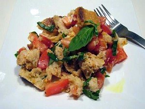 Aggiungete olio sale e basilico e mescolate ancora. La panzanella deve