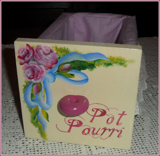 Per il 21° compleanno della mia adorata nipotina, ho decorato questa scatola in legno a forma di Y, utilizzando la tecnica della pittura country. Ho deciso di farla patchwork, nei colori della sua camera: verde salvia e rosa polvere. E per finire l’ho riempita con il regalo vero e proprio, un completino intimo regolarmente approvato e certificato da mia sorella, simpaticamente soprannominata Opus Dei 🙂