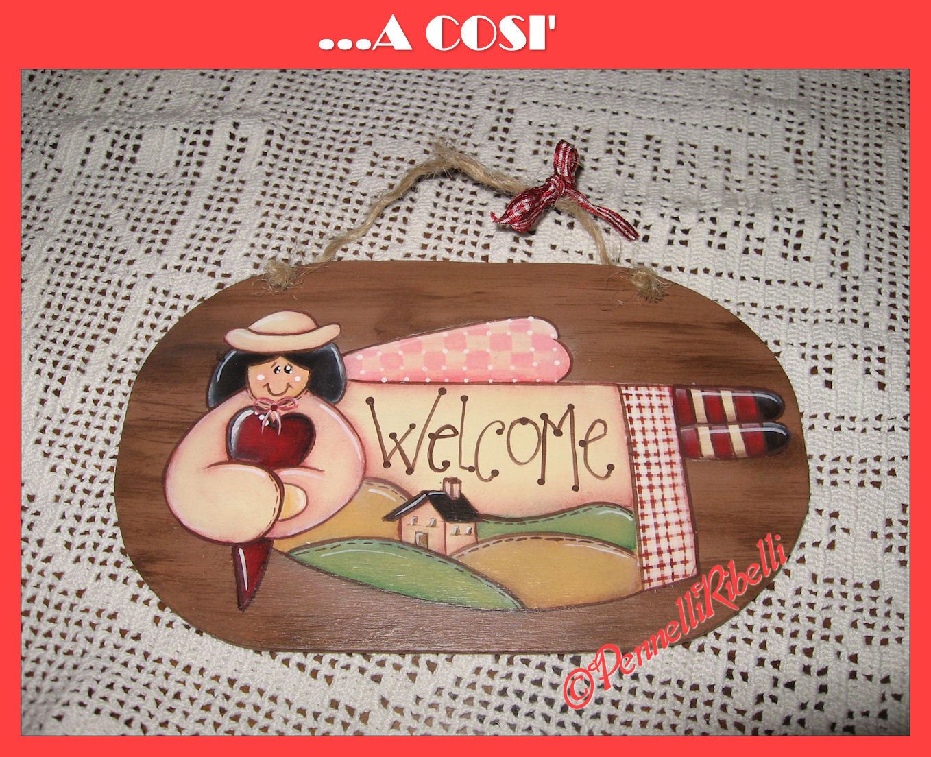 Il progetto, di DimensioneArte, prevedeva di dipingere una simpatica angioletta country su una tavola di legno nodoso, impregnata con mordente per legno. Non avendo una tavola simile (e anche per limitare i costi del materiale) ho optato per una semplice sagoma ovale in compensato. Ed ho approfittato per abbinare alla realizzazione dell’angioletta l’apprendimento della tecnica dell’imitazione legno.