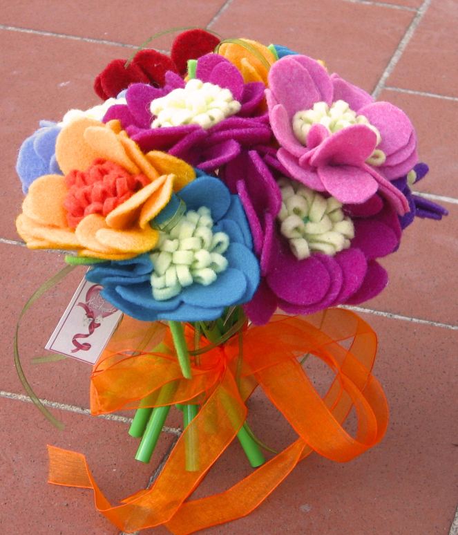 Nel tardo pomeriggio siamo ripartite, ognuna per la sua destinazione d’origine, con in tasca un altro bel ricordo da mantenere fino all’anno prossimo, sperando di essere qualcuna in più. E a proposito di ricordi, il mio per loro quest’anno è stato questo, un mazzolino di fiori in feltro, montati su lapis verdi.