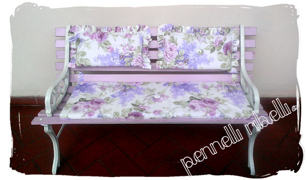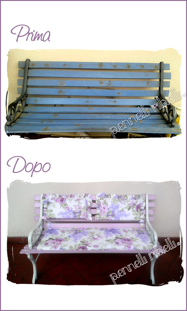 Ohhhh, e finalmente anche questo progetto, che arrancava da ormai due anni, è arrivato alla fine. Si tratta della tristemente famosa panchina del terrazzino, rovinata da uno dei miei primissimi attacchi di découpage in cui ebbi la malaugurata idea di dipingerla di azzurro e di incollarvi delle pansé gialle essiccate. Una roba da vergognarsi.