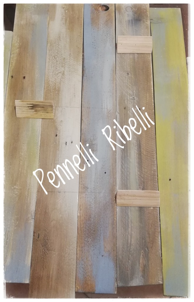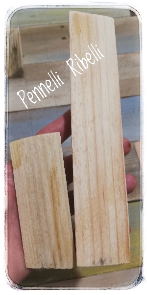 Dopo aver incollato sul retro un pannello di cartone pressato per un ulteriore sostegno, ho smontato una cassetta della frutta, ho recuperato i triangoli in legno che reggono i lati e li ho divisi a metà.