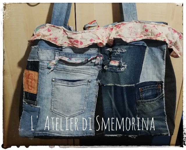 No, non è un refuso, intendo proprio questo, una grande, grandissima borsa! Ecco cosa ho realizzato con tutti quei vecchi jeans.