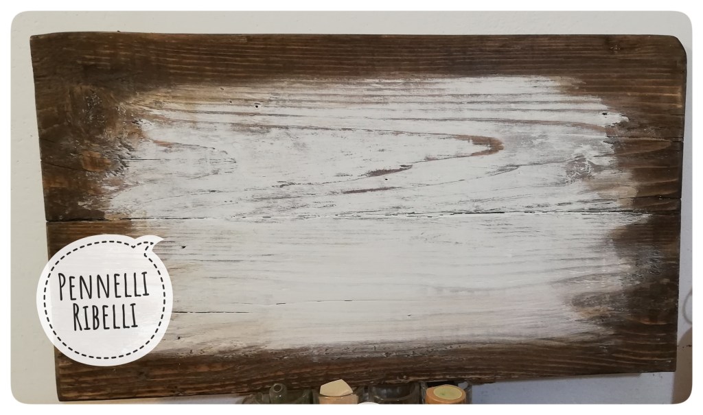 e dopo che era asciugato ho passato anche due mani di acrilico bianco in modo volutamente imperfetto, un po’ shabby insomma.