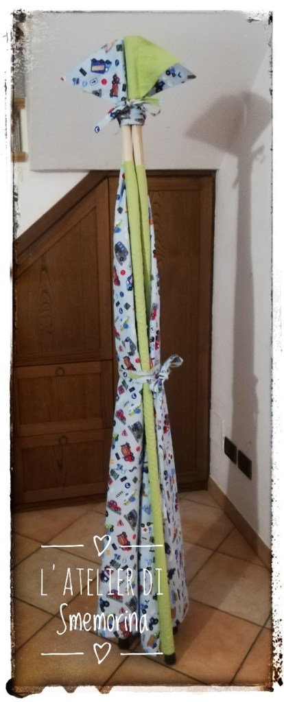 Ecco qua il lavoro finito, avrete già capito cos’è: un Tepee per il mio Patatino