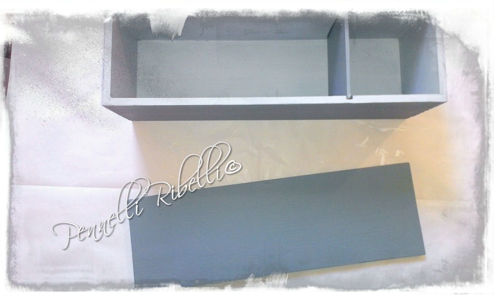 Per questa occasione ho anche rispolverato il proverbio “Chi ragiona col cervello degli altri può friggersi il suo”, e ho modificato il progetto che avevo fatto per assecondare le richieste (e velate minacce 🙂 ) di Simone, che non riuscivo a farmi piacere, per assecondare il mio istinto ed il mio gusto personale, e ho quindi proceduto a passare la candela sulla scatola e a dare una seconda mano di colore più chiaro, con una leggera carteggiatura finale….ohhhhh….ecco di nuovo il mio amato shabby. Per usare un paragone “modaiolo” potrei dire che in questo abito mi ci sento proprio comoda.