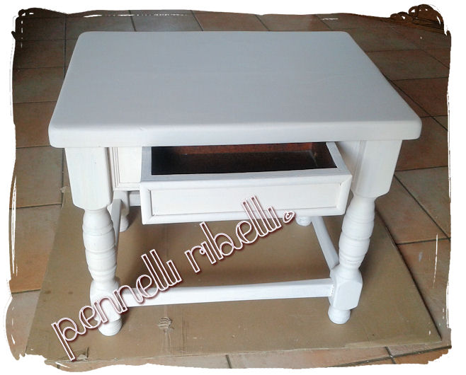 Potevo forse lasciare il mio maritino con il negozio sguarnito di qualsivoglia decorazione?!?!? Giammai! E allora ho ripreso pennelli e colori e mi sono rimessa all’opera. Per la Cappella Sistina ci hanno messo meno, complice anche l’umidità dei giorni scorsi che non mi faceva asciugare il colore (ed è tutto dire, visto che l’acrilico asciuga in un battibaleno).