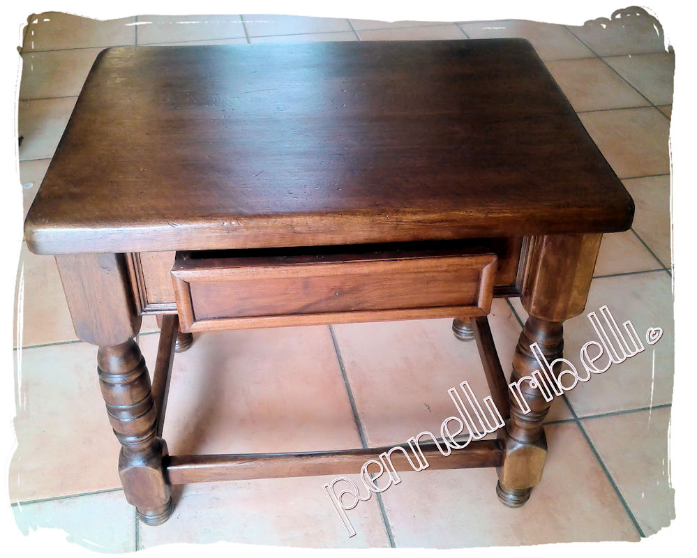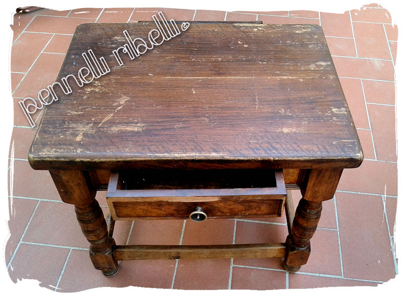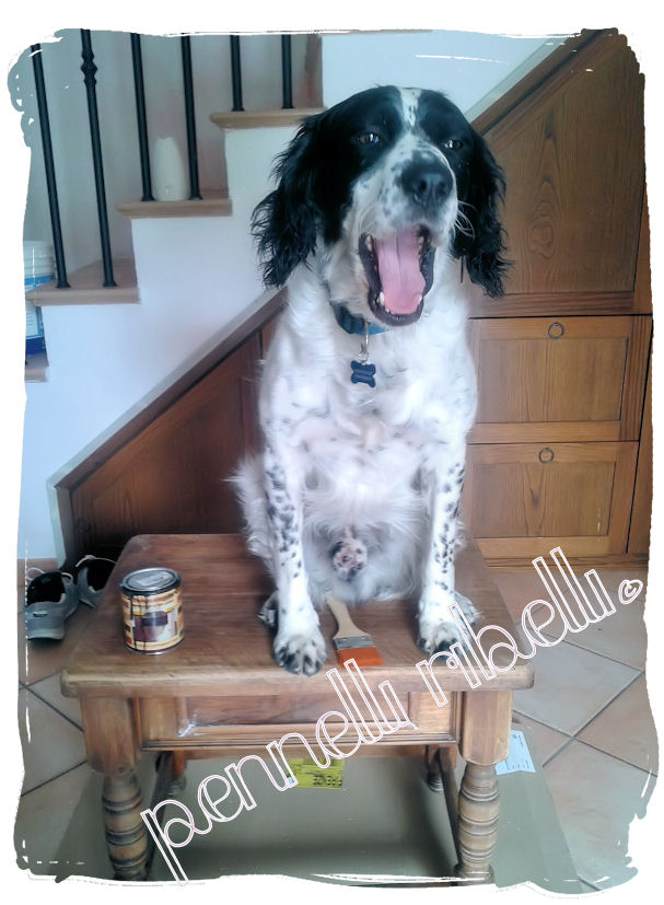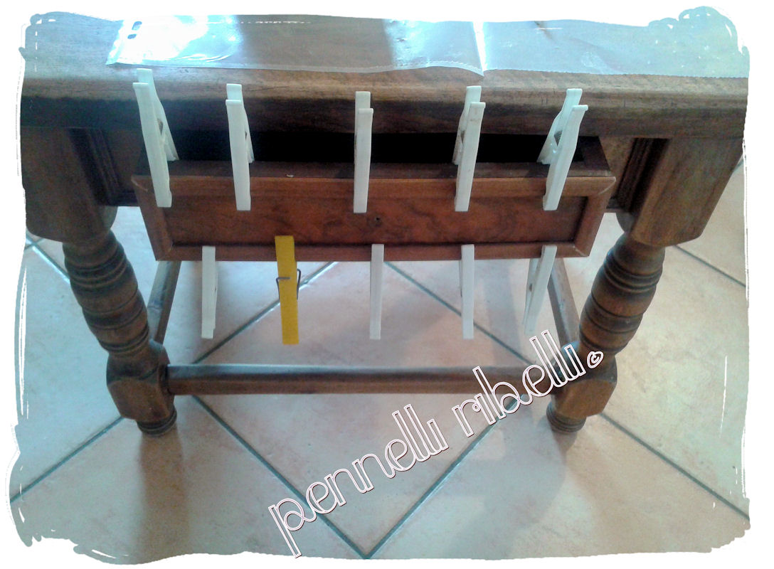 Questo è il risultato dopo l’impregnante, e qui devo dire che ho vacillato un po’…il risultato era già così bello che ho seriamente pensato di lasciarlo così. Ma poi la mia voglia di cambiamento ha preso il sopravvento e allora via! O dente o ganascia.